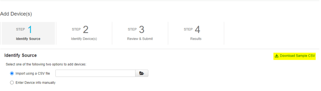- Then download the sample CSV. Use this CSV to add all of the routers at once. Keep this page open cause once you are done you will browse and import the CSV here.