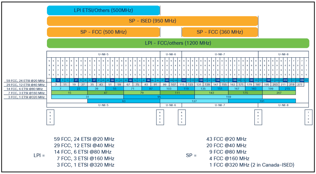 My guess to the reason why we don’t see this new width on the 5Ghz spectrum is that 320Mhz is almost the entire width of the spectrum. The 5Ghz spectrum is too small and there would only ever be a single channel for APs to fight over.